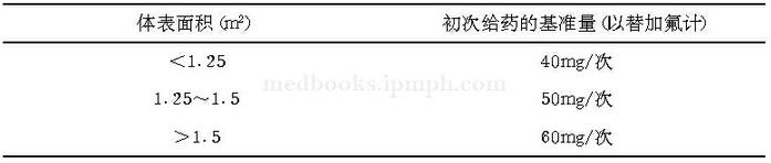 注:以上剂量以替加氟计,增减剂量时应在每个周期按照上表顺次增减。