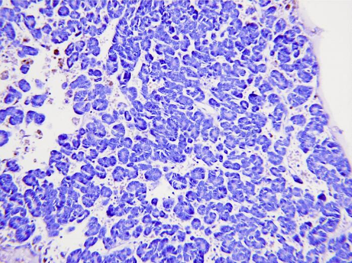 图10-3 组织病理学显示肿瘤以上皮组织为主(HE×100)