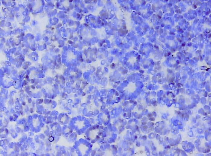 图 10-4 免疫组化显示 WT1 部分阳性(IHC×200)