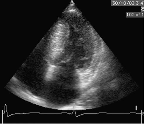 图31‐23 超声心动图表现(心尖4腔图)