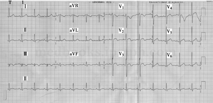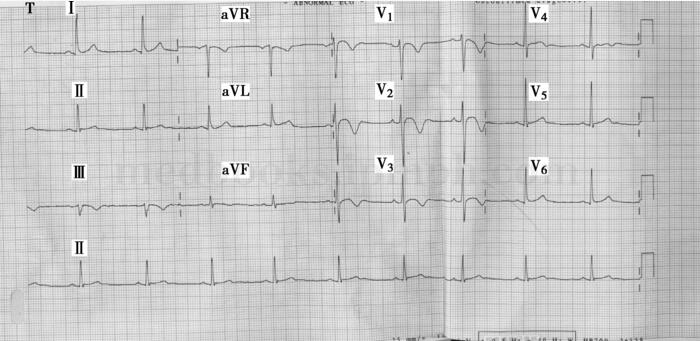 "图5‐35‐1 入院心电图:窦性心律,V1~V3导联ST段略抬高