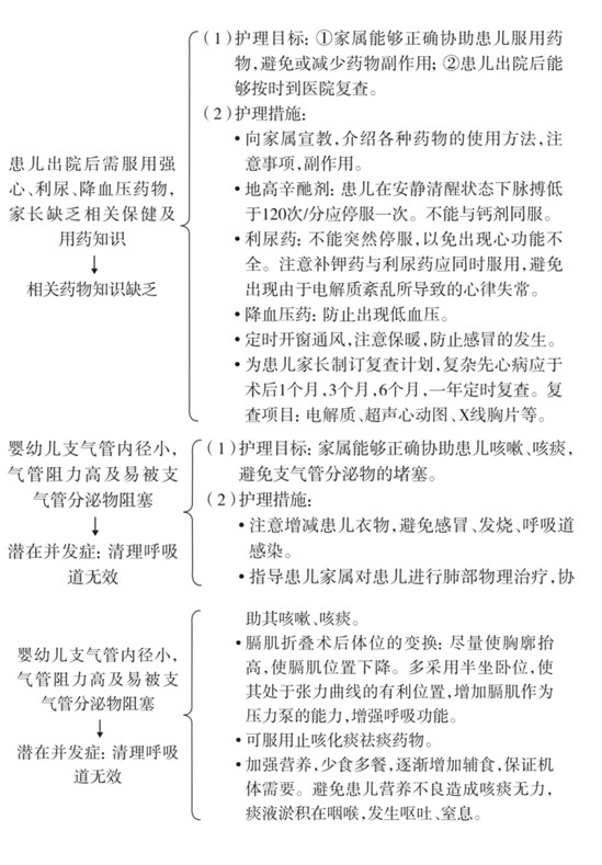 患儿年龄小,出院后须在家属帮助下服用强心、利尿、降血压药物,护士应给予详细健康指导。