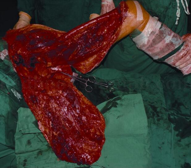 图41‐7 离断肢体后皮瓣情况