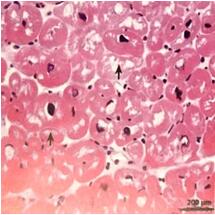 1. 急性心肌梗死(AMI) 在犬心肌梗死模型中,左前降支近端闭塞5~6小时后可以发现脂质液滴开始积累。脂质液滴在心肌梗死后24~48小时显著增加,并主要分布在心肌梗死区域周围的狭窄且不规则的肌肉组织带。细胞内脂质积累的具体病理生理学机制尚不清楚。可能与急性冠脉综合征发生后血浆去甲肾上腺素浓度的升高,提高了组织的脂解作用和使更多的FFAs提供给心肌有关。此外儿茶酚胺可以减少胰岛素的分泌,导致转运到心肌细胞的葡萄糖减少。因此,细胞内脂质积累可能与血清游离脂肪酸结合能力的升高和缺血心肌代谢能力的降低有关。