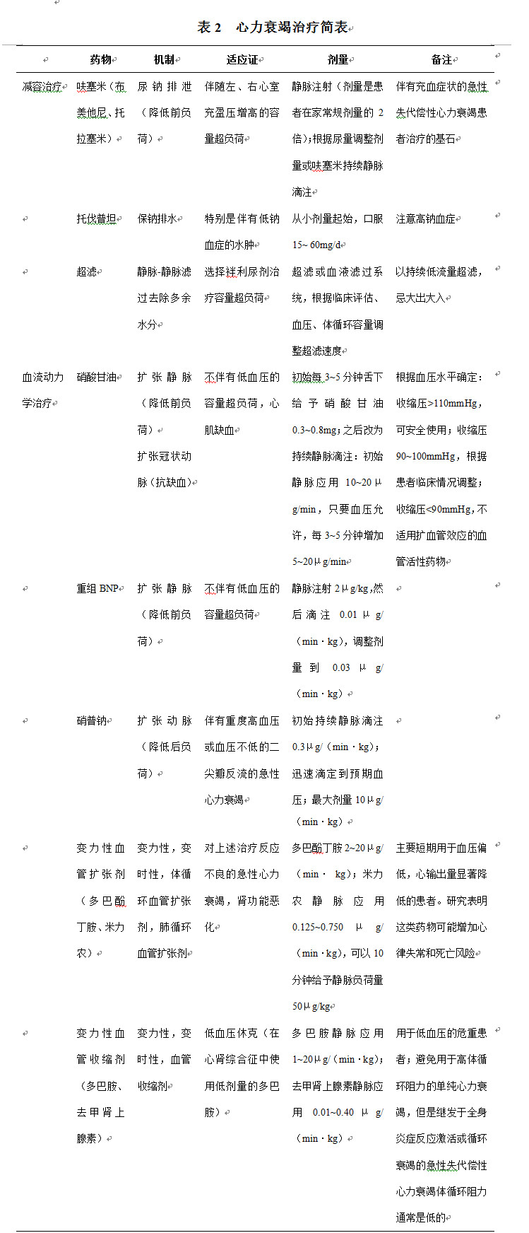 心力衰竭患者住院期间的治疗原则见表2所示。