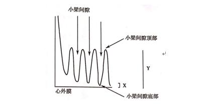 图4 1990年Chin的LVNC超声心动图x/y测量方法(舒张末期) X:心外膜至肌小梁间隙底部;Y:心外膜至肌小梁顶部