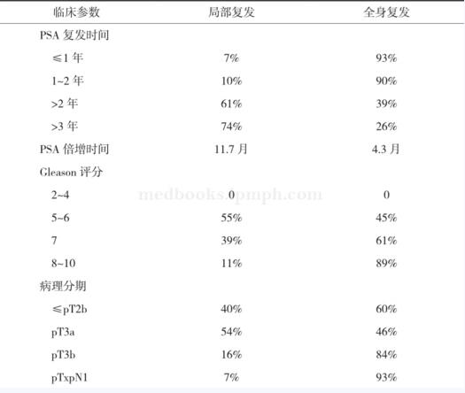 诊断问题:前列腺癌根治术后的生化复发根据EAU2009指南的新的标准,判断根治术后的生化复发比较简单,困难的是如何进一步判断其将发生局部复发还是远处广泛转移。如果术后1个月,患者的PSA没有降到0,首先结合术前前列腺穿刺病理结果,术中所见前列腺周围组织有无粘连,前列腺标本是否完整,术后切缘是否阳性等情况综合判断是否存在肿瘤残存。