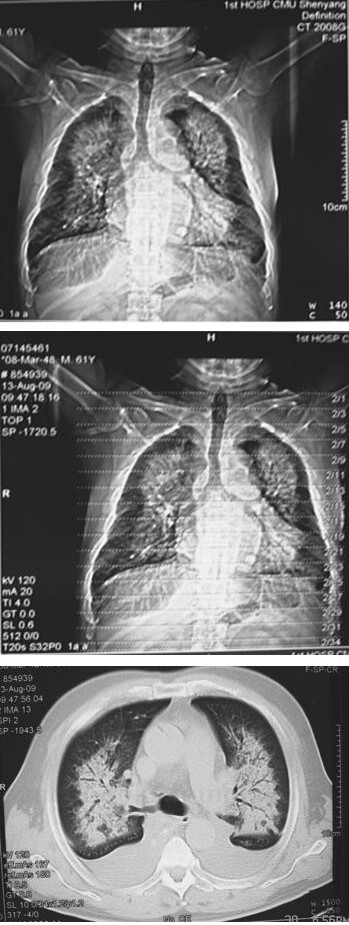 提示急性肺水肿。入院当天胸部CT见图2-2,入院第3天胸部CT见图2-3。
