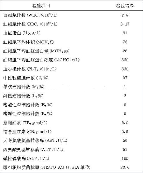 答:白细胞计数(WBC)、血红蛋白(Hb)、红细胞平均体积(MCV)、红细胞平均血红蛋白量(MCH)减低,尿组织胞质菌抗原(HISTO AG U)阳性,组织胞质菌抗体阳性,骨髓和血培养组织胞质菌阳性。