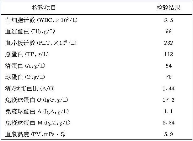答:患者异常的检验结果有:血红蛋白(Hb)、清蛋白(A)减低;清/球蛋白比(A/G)倒置;总蛋白(TP)、球蛋白(G)、免疫球蛋白G(IgG)、免疫球蛋白M(IgM)、血浆黏度(PV)明显增高。血清蛋白电泳出现异常条带。