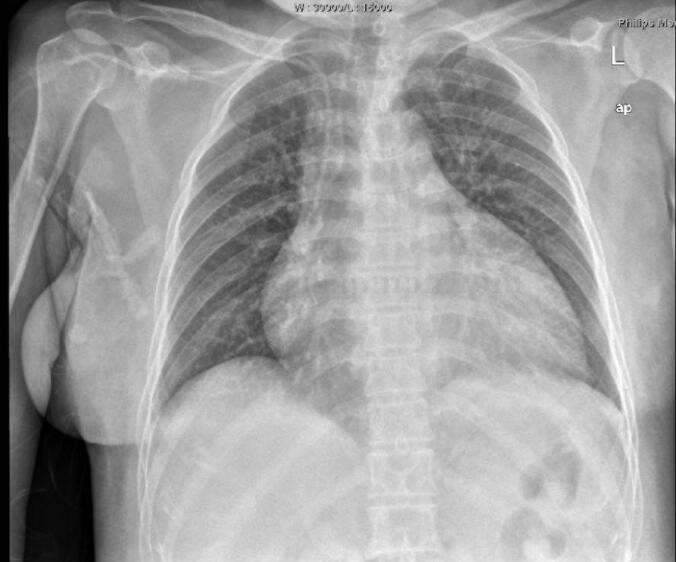 图2 双肺纹理增多,心影增大