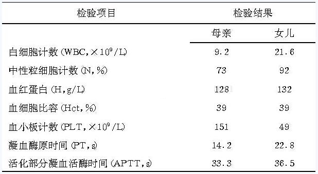 实验室检验结果见表1。女儿血涂片检查:中性粒细胞核左移。