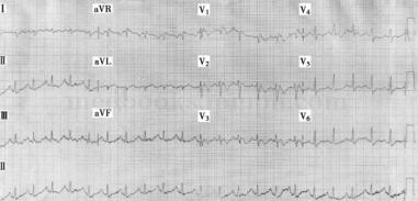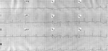 图1 急诊心电图:窦性心动过速,ST‐T改变