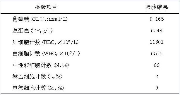 表1 实验室脑脊液部分检验结果