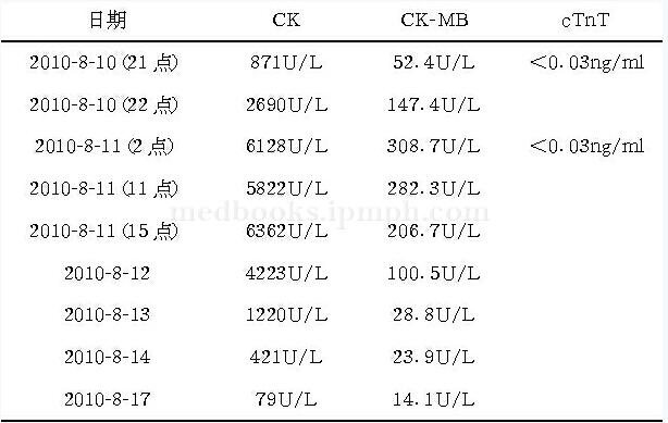 表1 心肌酶动态演变
