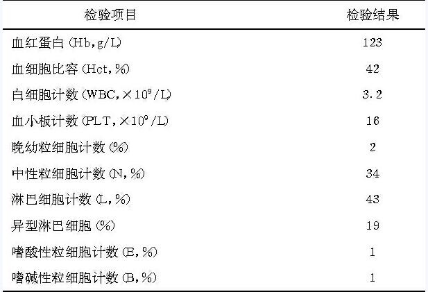 答:患者白细胞计数(WBC)和血小板计数(PLT)减低,外周血涂片中出现不典型淋巴细胞,登革病毒抗体阳性。