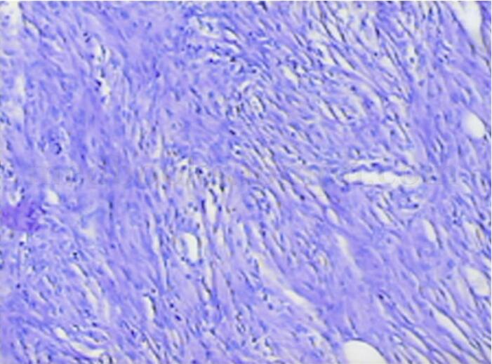 组织学分型:可分为上皮型、肉瘤型、混合型及结缔组织增生型。上皮型间皮瘤最常见,大约占间皮瘤50%~60%,结缔组织增生型最少。通过分型,可以对肿瘤作出初步诊断及预后评估,一般认为上皮型恶性间皮瘤预后好于其他类型。上皮型最典型的组织学表现包括:囊腺状、腺状及实性上皮瘤。肉瘤型恶性间皮瘤与脂肪肉瘤及平滑肌肉瘤相似。混合型恶性间皮瘤具有上皮瘤及肉瘤两种特点。