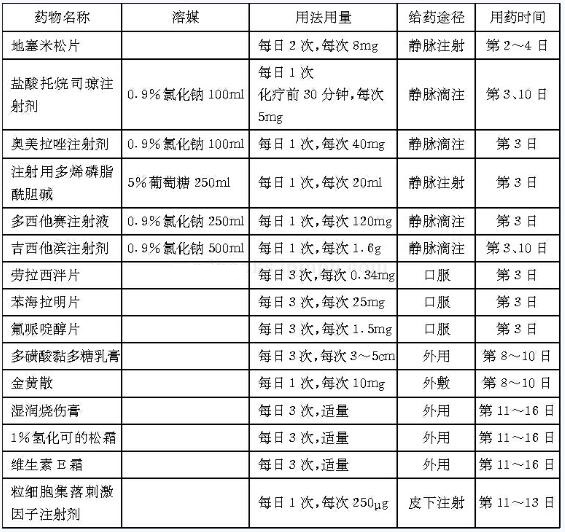 针对本例患者,因渗出药液不多或未出现急性炎症反应,数日后才出现损伤症状,已造成对组织损害,更应注意积极给予治疗。目前常用的治疗药物包括:①多磺酸黏多糖软膏,对皮肤有很强的渗透性,具有抗炎、抗血栓形成,促进正常结缔组织再生,对外渗有很好效果;②金黄散,由大黄、黄柏、姜黄、白芷、南星、陈皮、厚朴、甘草、天花粉配制而成,依中医治“疱疹”之消散原理,有较好的临床效果;③维生素E外敷能降低组织对氧的消耗,增强线粒体功能,影响核酸代谢和各种酶功能,且对色素沉着有一定效果;④湿润烧伤膏可促进创面愈合,兼有微弱抗炎作用,故整个用药对非急性期外渗具有合理性;⑤氢化可的松乳膏,具有减轻和防止组织对炎症的反应,消除局部发热、红肿和渗出的作用。