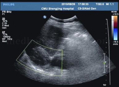 能够分辨2cm以上的囊肿,典型的B超表现为肾上腺区圆形或椭圆形无回声包块,囊壁光滑,边界清晰,囊内出血或感染时,则表现为低或混合回声,但对于周围脏器的关系分辨力较差,易误诊为胰腺、肝脏及肾脏囊肿。