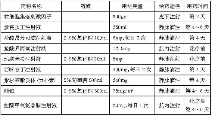 注:因患者Ⅱ度骨髓抑制严重,遂本次化疗将奈达铂改为顺铂