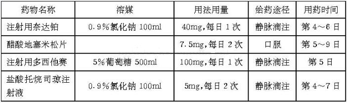 患者第2日行“多西他赛100mg d2+奈达铂40mg d1~3”化疗,第9日未诉特殊不适,给予出院。