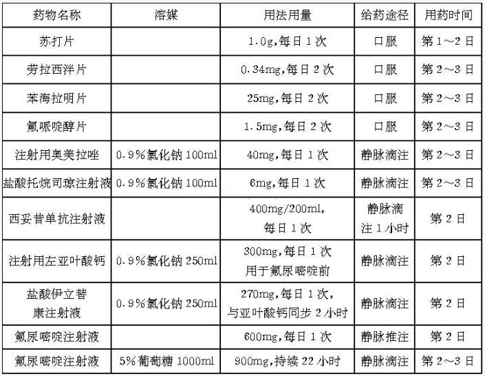 患者,女,65岁,因“结肠癌综合治疗2年余,盆腔复发术后2个月余”入院。患者2008年6月无明显诱因出现下腹痛,在外院行对症治疗后好转(具体不详),2008年11月结肠镜示横结肠肝曲附近占位,行右半结肠癌根治术,术后病理检查提示结肠腺癌侵及肠壁全层,手术两断端肠系膜淋巴结两枚切片未见癌组织,术后行奥沙利铂+氟尿嘧啶化疗3周期(具体方案不详)。2010年12月再次出现腹痛,就诊于医院,行腹腔粘连松解术+子宫双附件切除术+肿瘤减灭术,术中见肠管与肠壁多有粘连,肠管上多处散在病灶,右侧卵巢实质性包块,约6cm×7cm大小,与腹部后壁粘连致密,术后病理检查示双卵巢转移性中分化腺癌。术后盆腔MRI矢状位见肠壁局限性增厚,上腹部CT未见明显异常。自2011年1月起,以FOLFOX(奥沙利铂130mg/m2iv d1+亚叶酸钙200mg/m2iv d1~5+氟尿嘧啶450mg/m2iv d1~5,q4w)方案化疗1周期,化疗后复查肿瘤标志物均有所升高,同时考虑到患者KRAS检测显示KRAS基因为野生型,遂将治疗方案调整为FOLFIRI(伊立替康180mg/m2iv d1+亚叶酸钙400mg/m2iv d1+氟尿嘧啶400mg/m2iv d1+氟尿嘧啶600mg/m2civ46h,q2w)联合西妥昔单抗(每周1次)的治疗。患者现诉食欲不佳,为再次化疗入院。患者无特殊不良嗜好,既往有高血压十余年,长期口服硝苯地平可控;有青霉素过敏史。否认家族性遗传病史,否认家族性肿瘤病史。起病以来,患者精神、睡眠可,胃纳差,大小便无异常,体重减轻3kg。