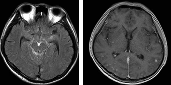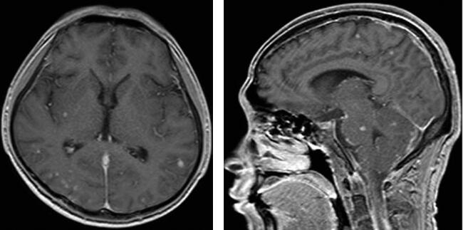 图1脑内多发结核瘤伴结核性脑膜炎