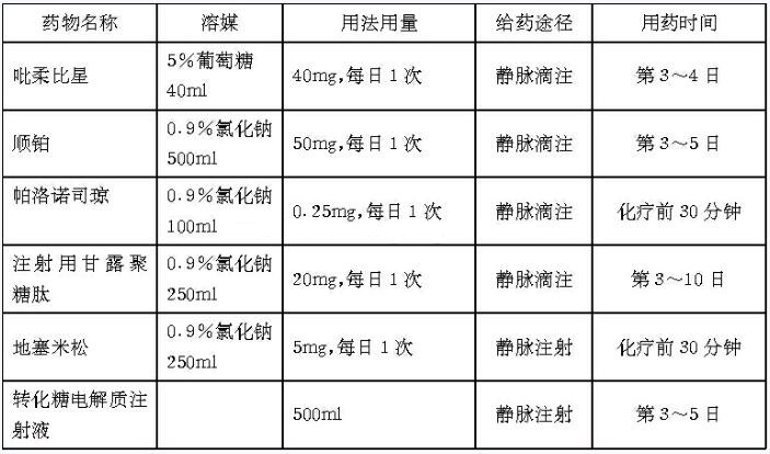 (2)患者教育:顺铂化疗前1日,交代患者一定要大量饮水,超过2L;应对患者进行健康教育,使其出院后对定期复查血象和自我监测的必要性有足够的认识,如有特殊不适应随诊;应提醒患者对脱发现象有心理准备,停止化疗后一般可再生新发,因此告诉患者必要时可戴假发度过化疗期。