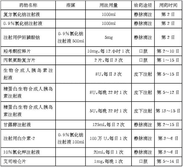 患者入院后确诊为2型糖尿病。给予诺和灵R早8U、中8U、晚8U于餐后30分钟皮下注射,诺和灵N8U晚22时皮下注射,同时监测血糖。药师每日指导患者严格根据时间用药,监测患者餐前及三餐后2小时的血糖数值变化情况,餐前30分钟注射胰岛素后要按时吃饭,同时预防低血糖,出现头晕等低血糖现象时应及时吃甜点食物或通知护士、医师。