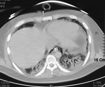 患者,男性,40岁,经商。因“发热伴咳嗽、咳痰1周,呼吸费力4天”于2011年4月5日急诊收住EICU监护治疗。患者1周前无明显诱因下出现发热,体温最高达39℃,伴咳嗽、咳痰,痰为黄色黏痰,有畏寒,无寒战,无恶心、呕吐,无腹痛、腹泻,曾至当地医院就诊,诊断为“肺部感染”,予静脉抗生素“阿奇霉素、头孢类(具体不详)”抗感染治疗后未见明显好转。4天前开始出现呼吸困难,气促明显,伴口唇发绀,无神志改变,来笔者医院急诊。既往体健,否认高血压、糖尿病病史,否认肺结核、肝炎病史,否认重大手术外伤史。