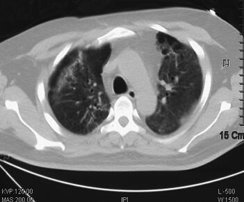 图1 2011年4月5日胸部CT示双肺感染