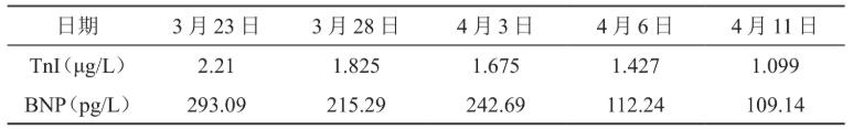 表2 继续治疗20天后患者TnI和BNP的变化情况