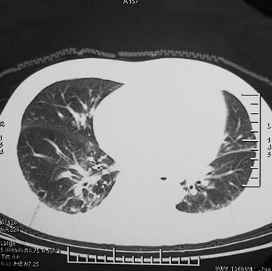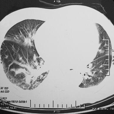 图1 2011年4月2日胸部CT