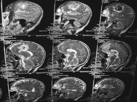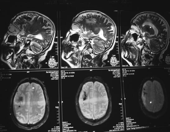 转归及预后:患者随访2年,目前一般状况良好,反应稍差,可从事日常活动。治疗8个月后复查MRI见图4。