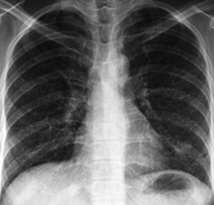 患者为商场销售员,既往身体健康,否认结核接触史,近期未到过外地。本次发病前无明显的诱因。咳嗽、咳痰,为黏性白色痰,无痰中带血及特殊气味。体温最高38.6℃,伴有寒战。有头痛、恶心、呕吐、乏力、食欲不佳,静脉滴注头孢唑林4天病情未见好转。