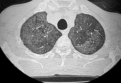 33岁男子,1个月前受凉后出现发热,伴寒战,最高体温达40℃,就诊于当地医院行胸部CT检查示:双肺对称的弥漫性分布的磨玻璃影,予抗感染治疗,先后静脉滴注红霉素、头孢哌酮-舒巴坦半月余(具体用法用量不详),体温较前有所下降,但未降至正常,咳嗽、呼吸困难症状未见明显缓解,为求进一步诊治来笔者医院。该患者患有……