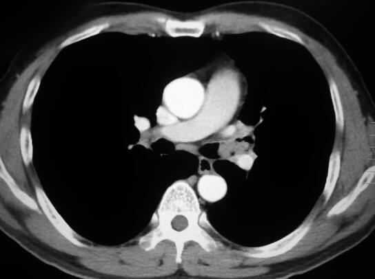 评价:患者病史清晰,既往影像学及支气管镜检查均提示左肺上叶支气管内肿物,明确病理诊断是首要任务。患者未进行任何治疗的情况下生存4年,提示肿物为低度恶性或良性病变,所以进行胸部增强CT检查,以评估肿物的大小、血运情况、与周围肺组织的关系、肺门及纵隔淋巴结是否受累等,为进一步的检查和治疗提供参考。为明确肿瘤性质需要行纤维支气管镜检查。