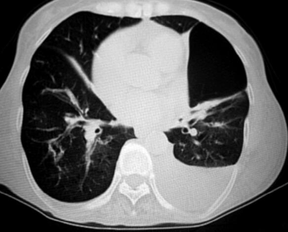 患者此次病情加重后有发热,咳黄色黏痰,结合血常规和痰涂片的结果提示存在细菌感染,多数慢阻肺急性加重由细菌感染诱发。血气分析提示患者存在重度的二氧化碳潴留,严重的呼吸性酸中毒,Ⅱ型呼吸衰竭,同时证实了患者的神志障碍应该与二氧化碳的升高有关。血电解质结果提示患者存在低钾、低氯,这在慢阻肺急性加重患者中是比较常见的。胸部CT排除了支气管扩张、弥漫性泛细支气管炎及肺结核等引起慢性咳嗽的其他疾病,并提示有肺气肿和多发肺大泡。