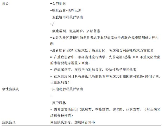 表2.根据感染灶进行经验性抗感染治疗推荐药物选择