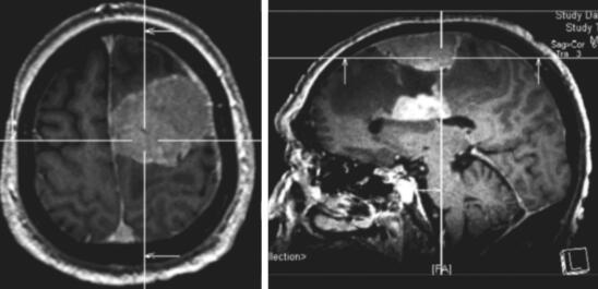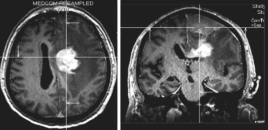 患者老年男性,头颅MRI提示左额深浅两个病灶,结合患者目前影像学检查及术中冷冻结果,患者诊断基本明确,待正式病理报告确定下一步治疗。