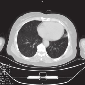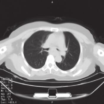 2. 多次肺部CT扫描均未见异常,即使出现胸闷症状,查体肺部闻及吸气相哮鸣音时肺部CT亦未能发现与之对应的影像学表现。