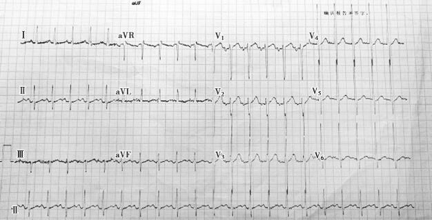 图1 心电图示窦性心动过速,左室高电压