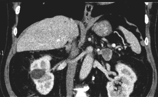 双侧肾上腺CT扫描示:双侧肾上腺区类圆形低密度影,与双侧肾上腺外支分界不清(图1)。双侧肾上腺增强CT扫描:双侧肾上腺区类圆形占位,肿瘤性病变可能:转移瘤?腺瘤?(图2,图3)。