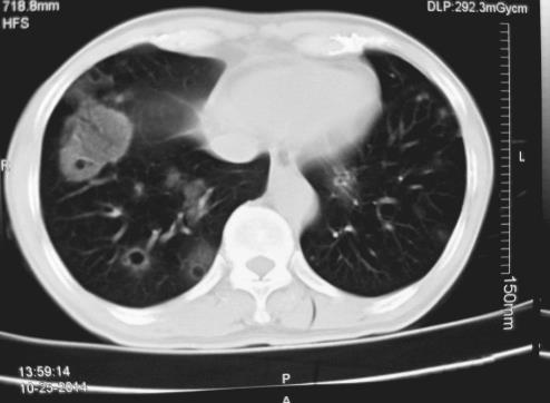 空洞病灶是肺部疾病常见的影像学表现。很多种疾病在发展过程中均可形成空洞。在病理学上空洞是病变坏死后其液化的成分经支气管排出并引入空气而形成。不同疾病空洞的病因及形态各有特点。充分认识空洞的影像学特点对于疾病的诊断十分重要。空洞病灶根据其数目可分为单发和多发空洞,本例患者主要表现为咯血及肺部多发空腔病灶,需与以下多种疾病进行鉴别。