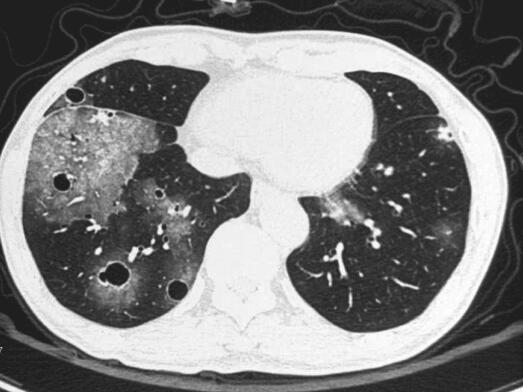 双肺空洞病灶较入院时略有进展