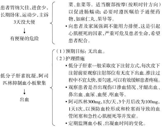 (4)绝对卧床休息,稳定患者情绪,减少刺激,保持患者大便通畅。