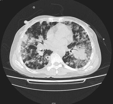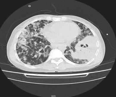 2. 主要表现为高热、呼吸困难,查体双肺散在湿性啰音,胸部CT检查提示双肺弥漫性结节空洞影,肺组织坏死性改变。