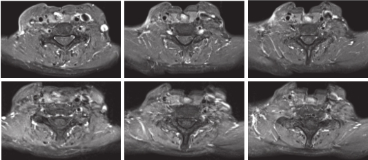 疗效评估:患者口服安罗替尼1周期后疗效评估达PR(图3),术后放疗后疗效为CR,随访至今,病情维持CR状态,局部MRI及全身检查未见肿瘤复发转移,无病生存时间已达30个月以上(图4)。
