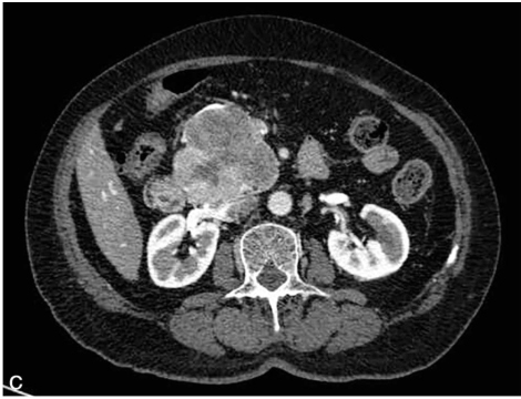 本病例肿瘤位于胰头部,手术方式选择胰十二指肠切除术。