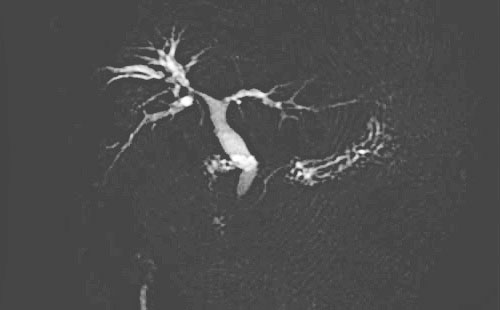 图1 MRCP:肝右叶胆管结石,胆总管结石